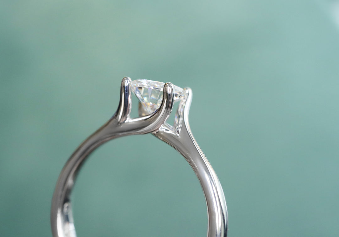 - Choose between moissanite, lab-grown diamond, or natural diamond.