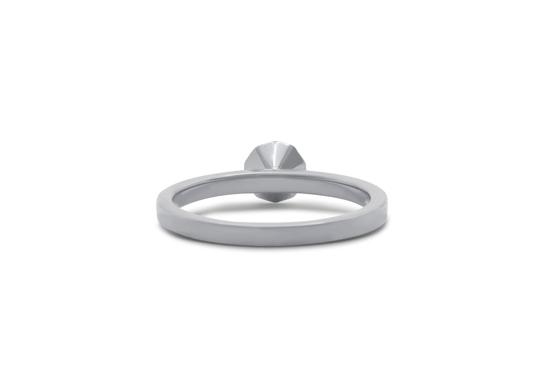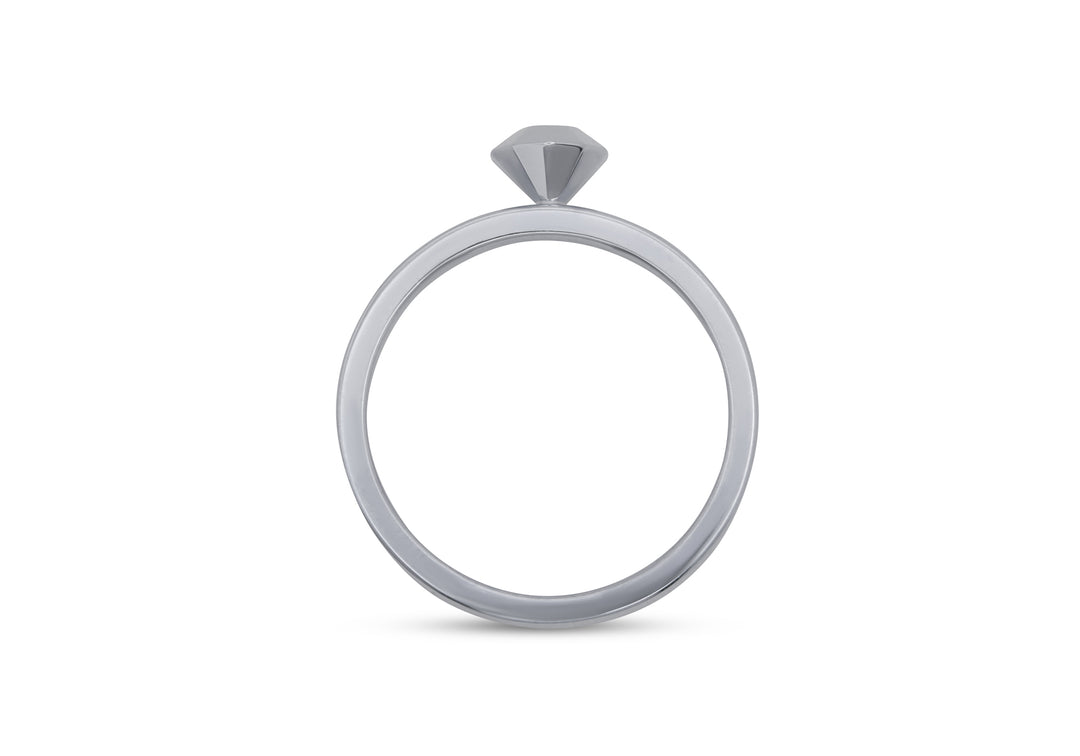- Sterling silver solitaire with imitation faceted diamond in metal.