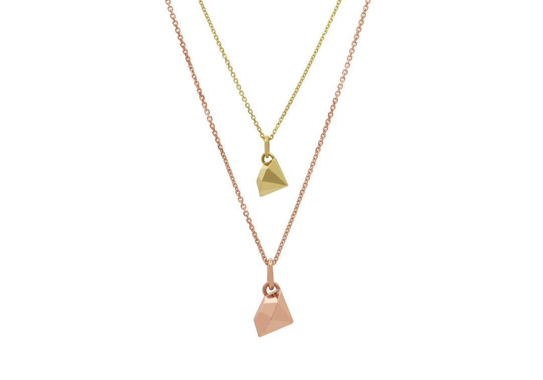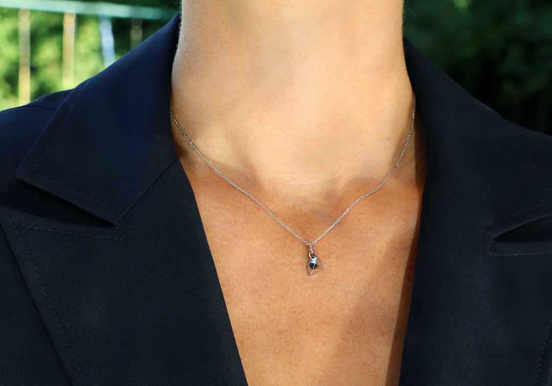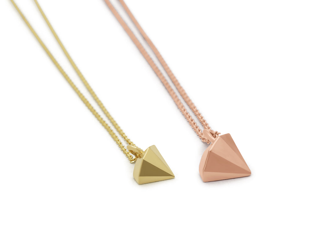 • Gold funeral pendant in the shape of a hollow faceted diamond to hold ashes.