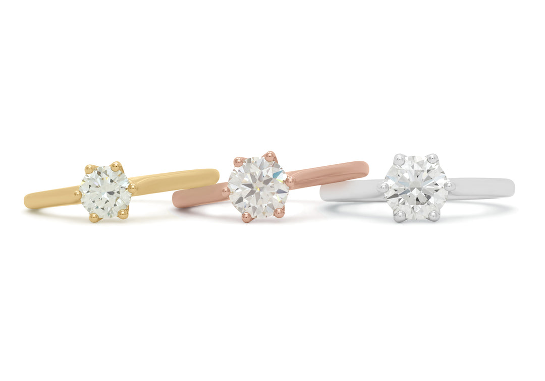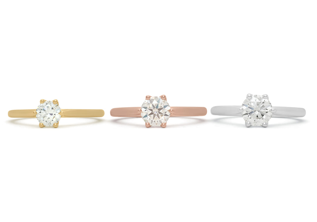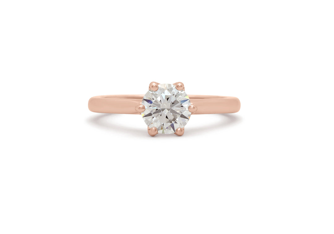 - The diamond is mounted on a dome and secured by 6 prongs.