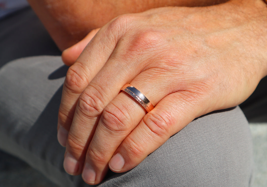- Wedding rings for men made of recycled gold.