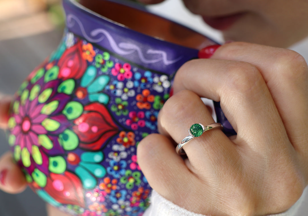 Our jewellery is handcrafted to environmentally friendly standards. We use recycled metals, laboratory-created stones and Canadian diamonds in the design of all our jewellery.
