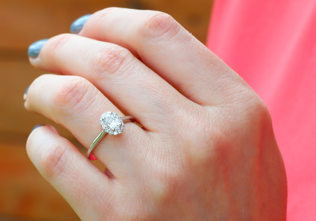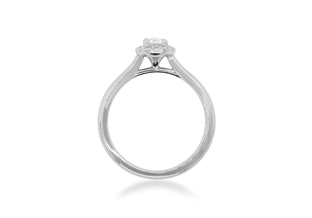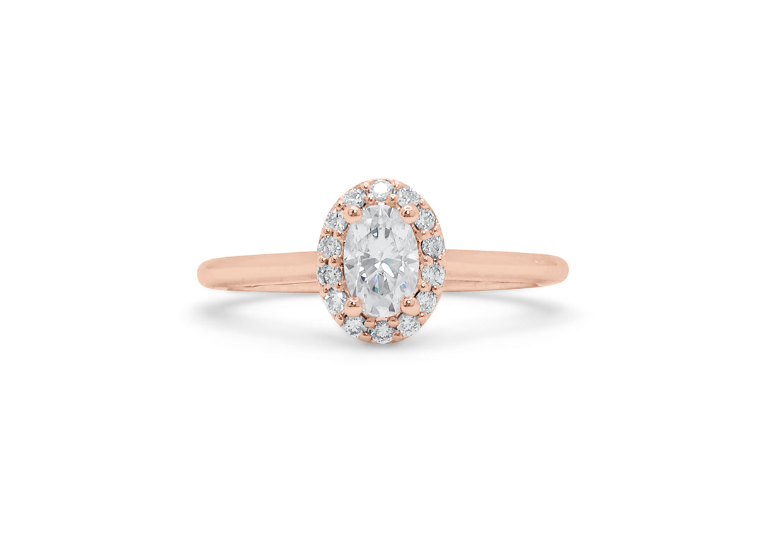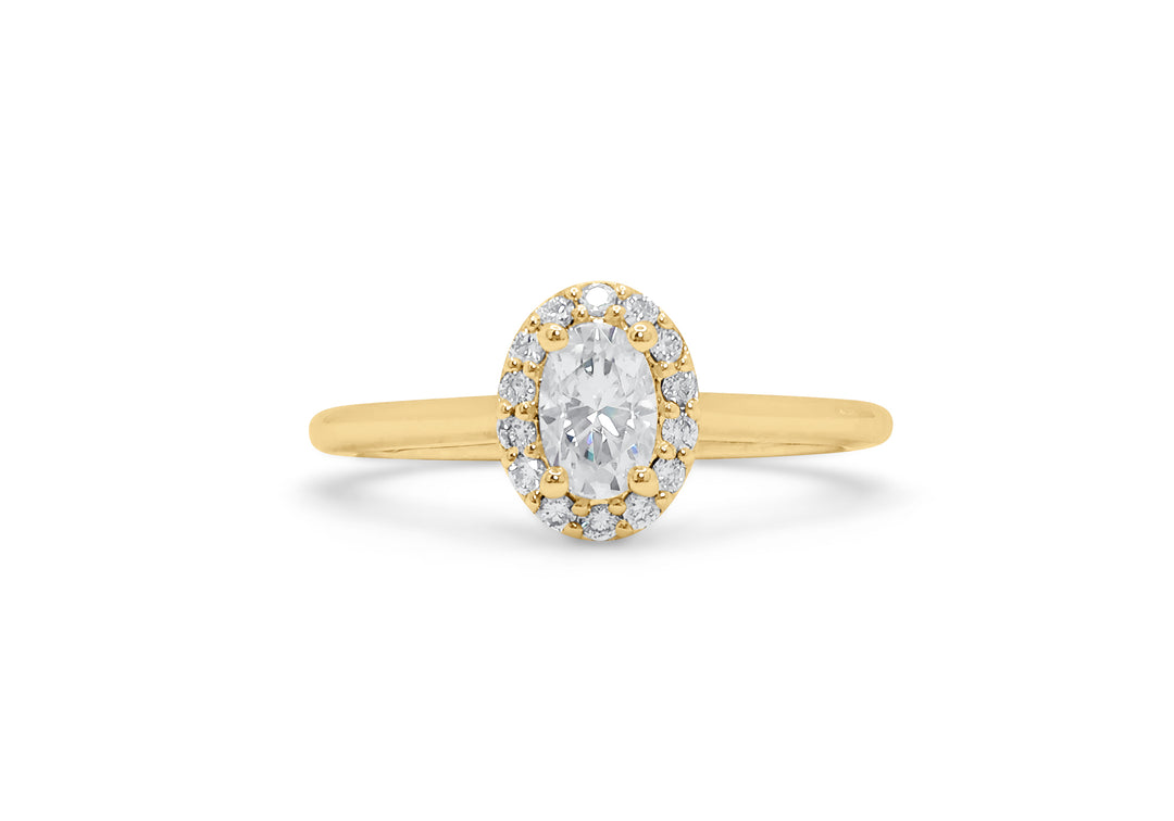 - Solitaire with an oval diamond and a halo.