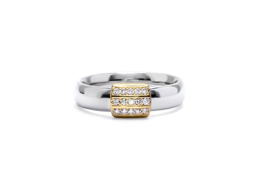 - Classic band with a centered gold piece with 15 lab-created diamonds.
