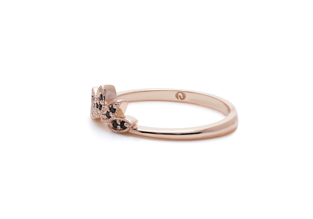 Gold wedding band with 10 round black spinels.