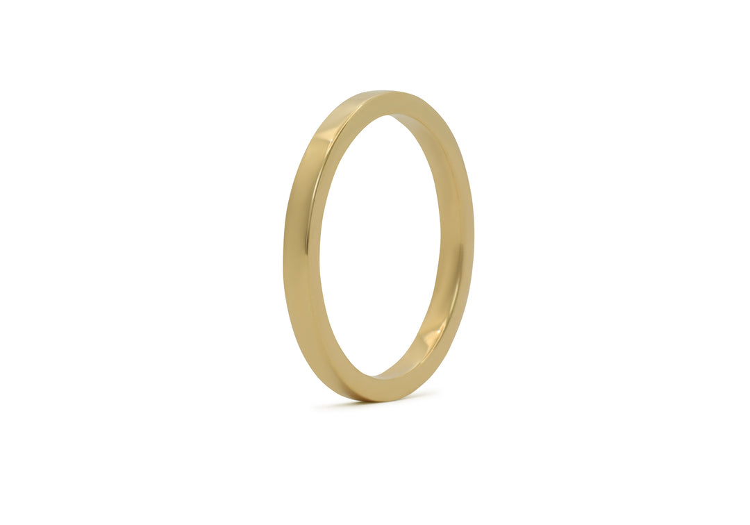 - A perfectly straight, polished gold wedding band. A classic!