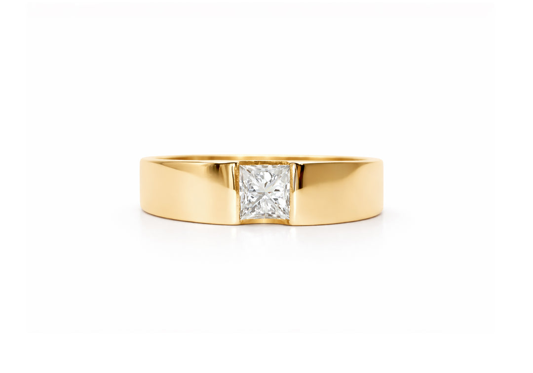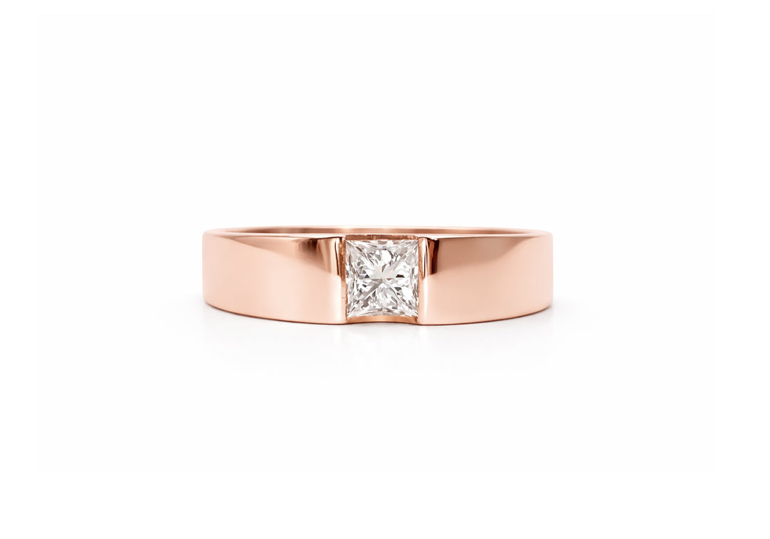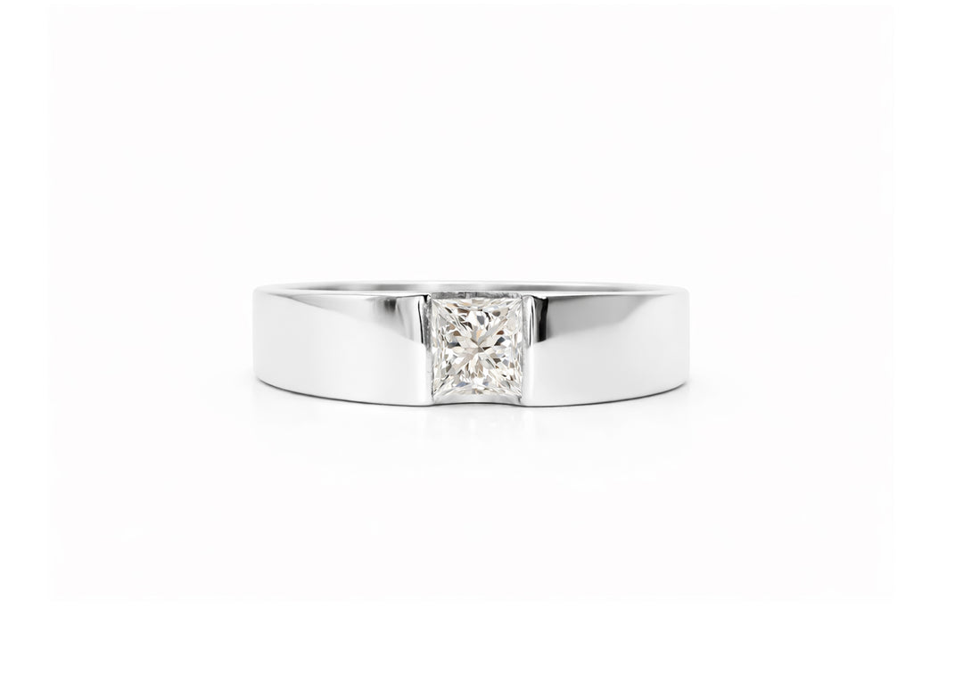 - Solitaire with a princess cut diamond.