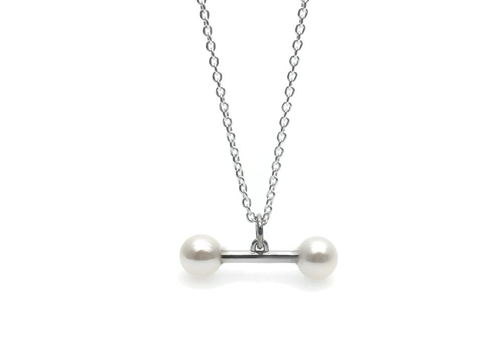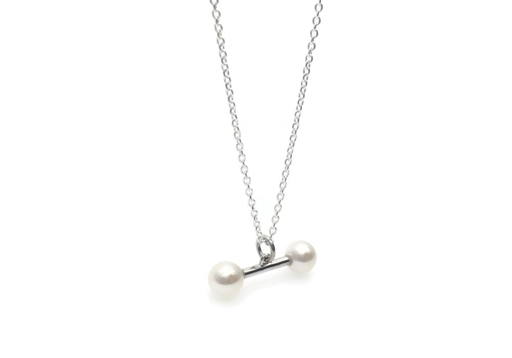 - Sterling silver pearl pendent, perhaps suggesting dumbbells.