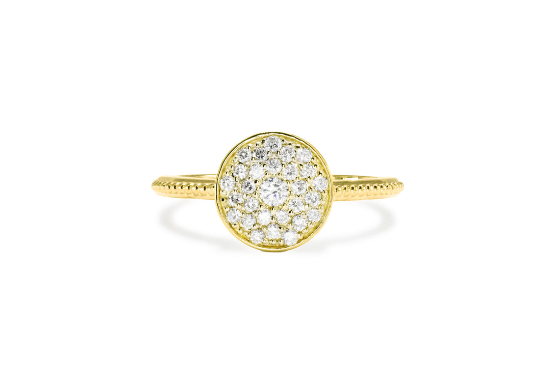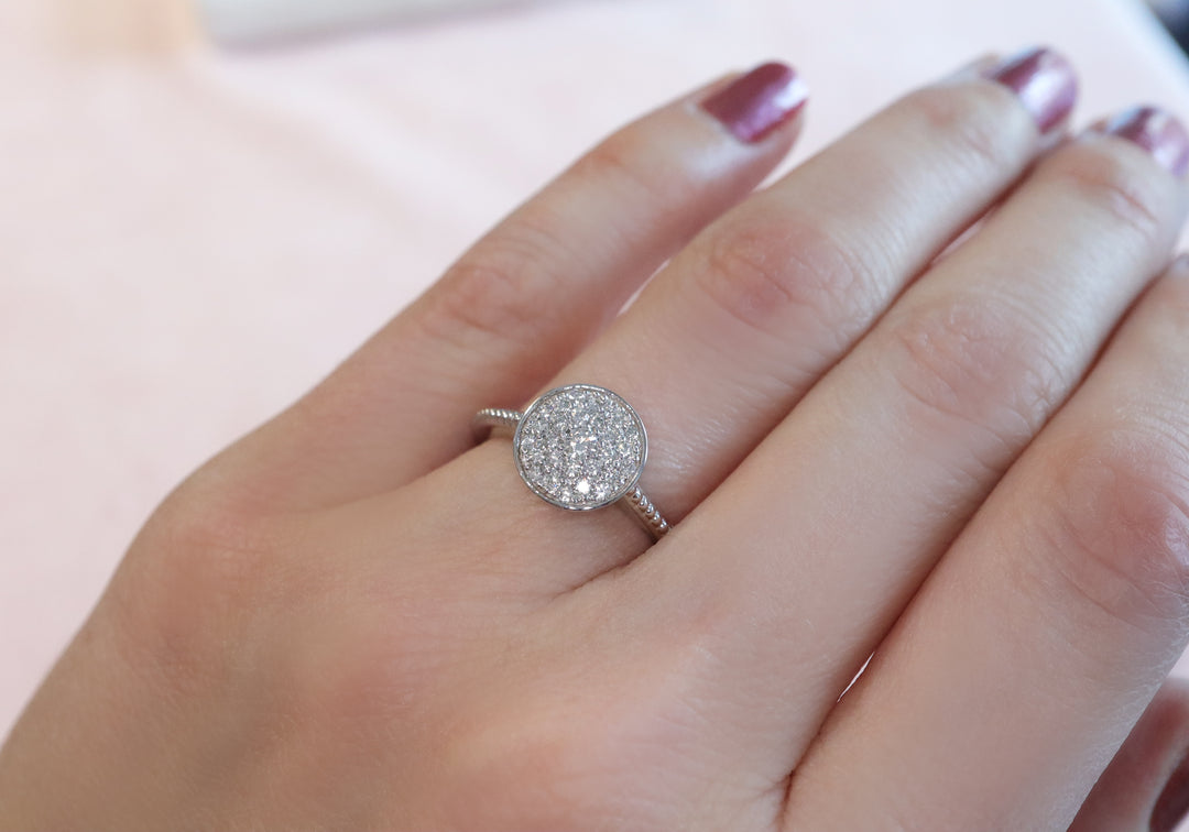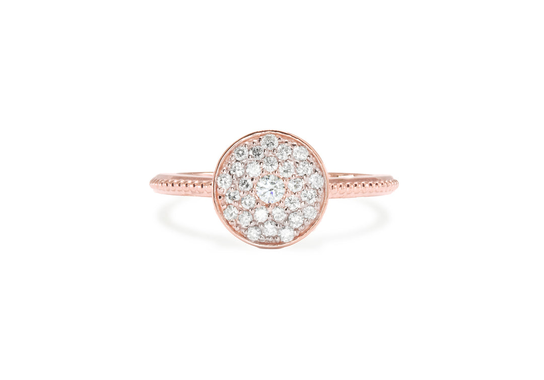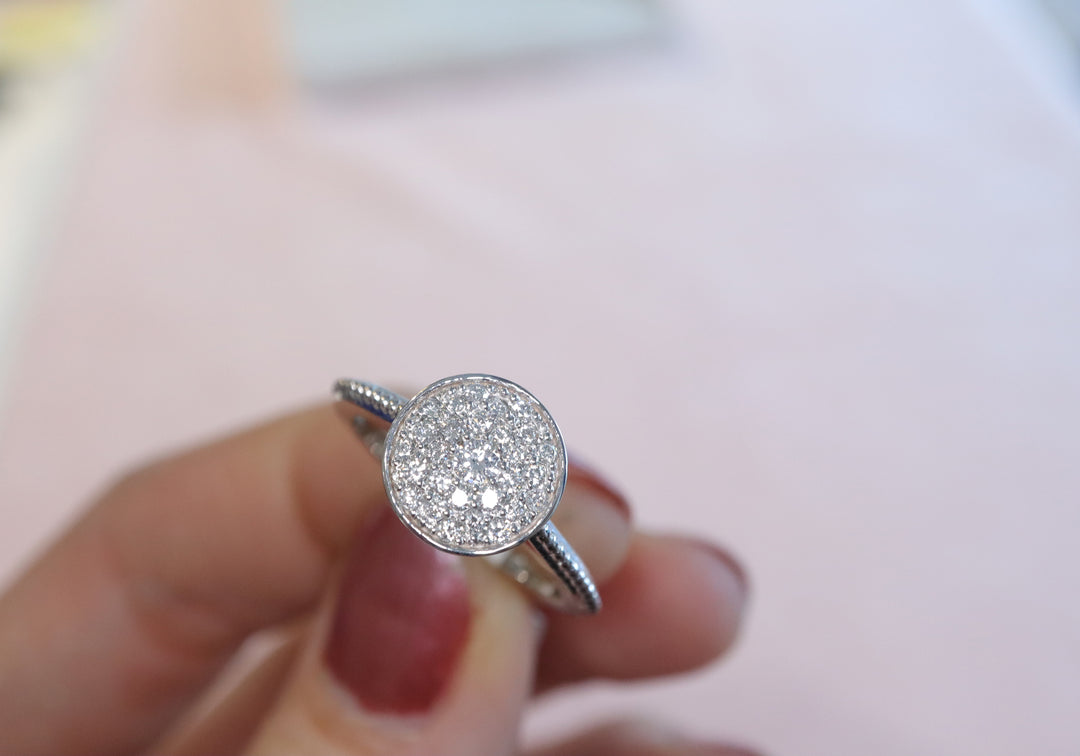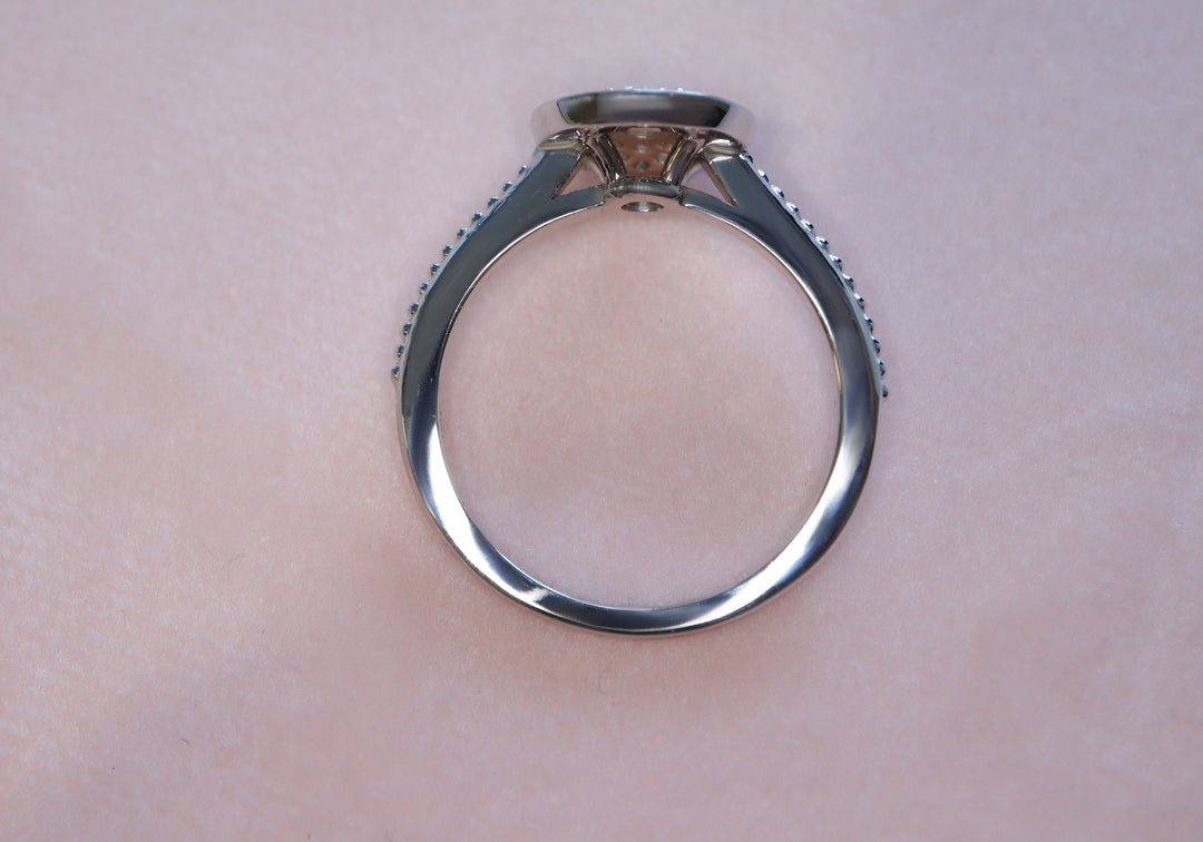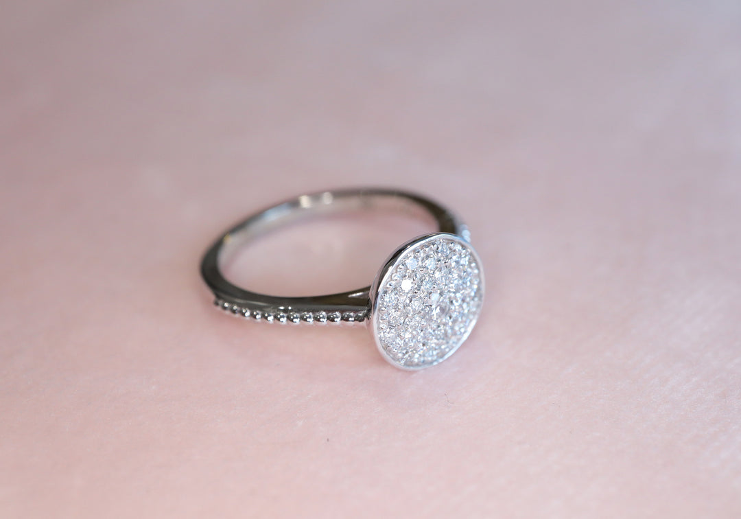 - The millgrain (the balls/texture) on the shank of the ring gives this design a vintage feeling.