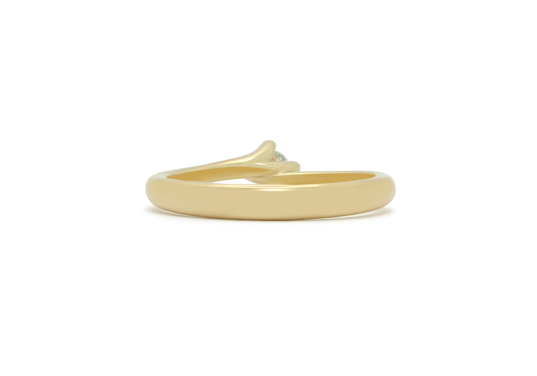 - The curved basket of the setting highlights the stone and lets the light penetrate.