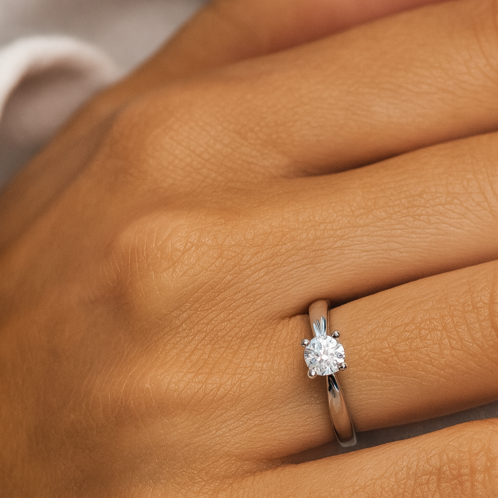 - Choose between moissanite, lab-grown diamond, or natural diamond.