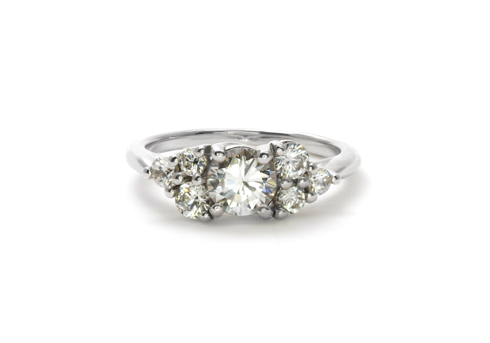 - Beautiful arrangement of 7 moissanites.
