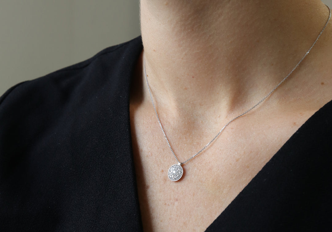 - Perfect pendent that goes from night to day with ease, adorned of 0.32ct of diamonds.
