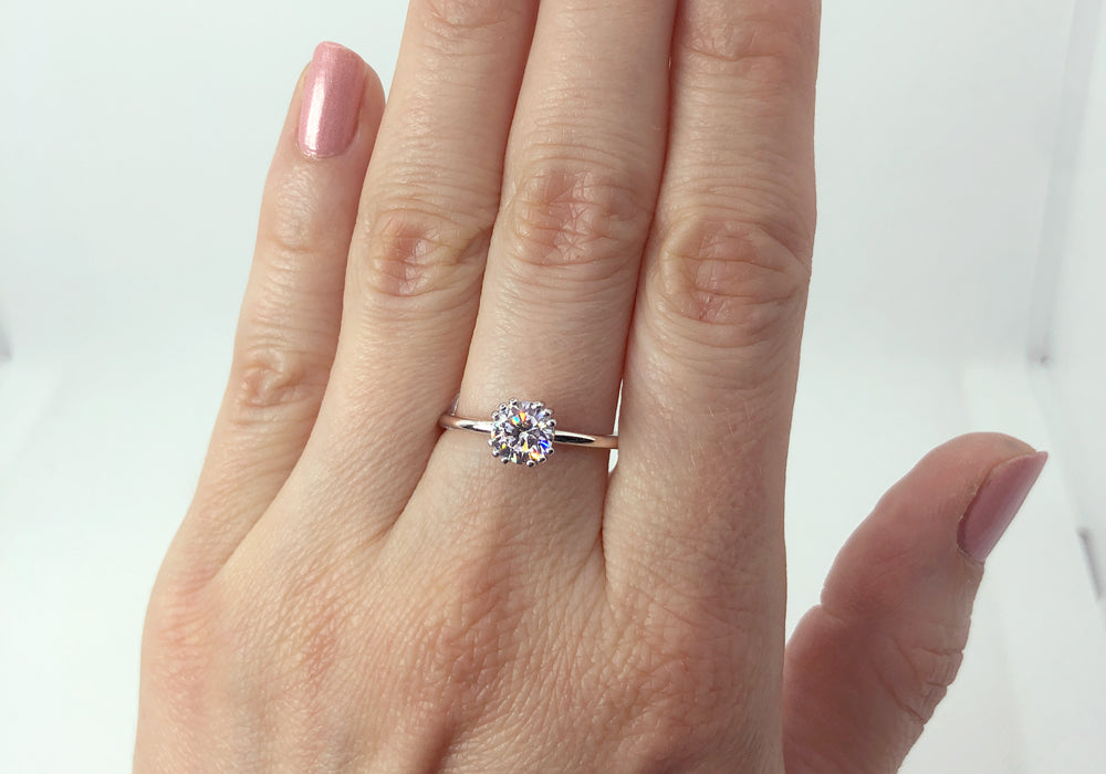 - Choose between moissanite, lab-grown diamond, or natural diamond.