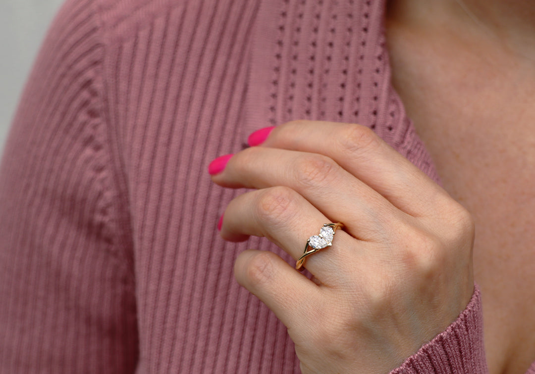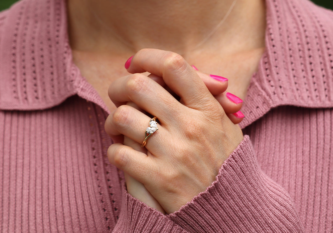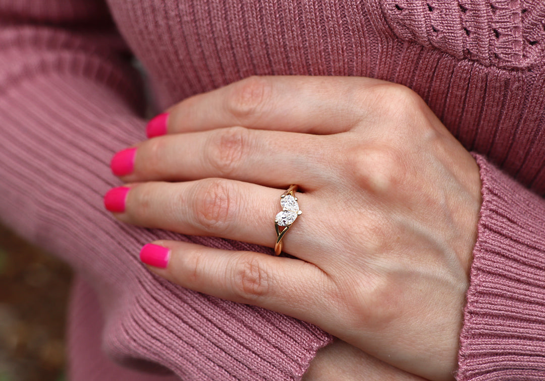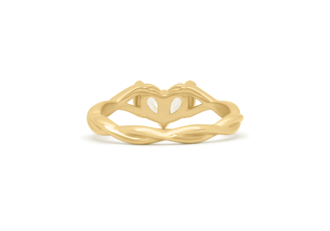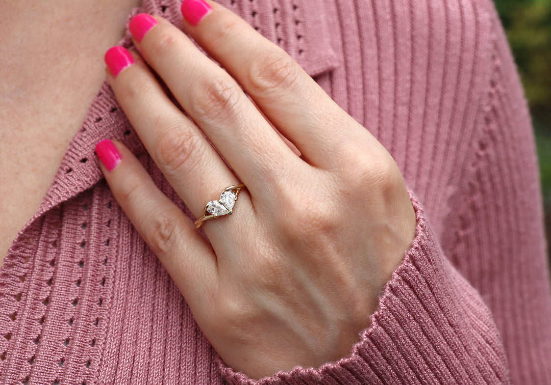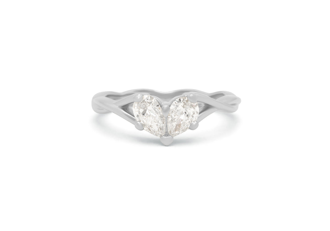 - Engagement ring with two pear-shaped diamonds forming a heart.