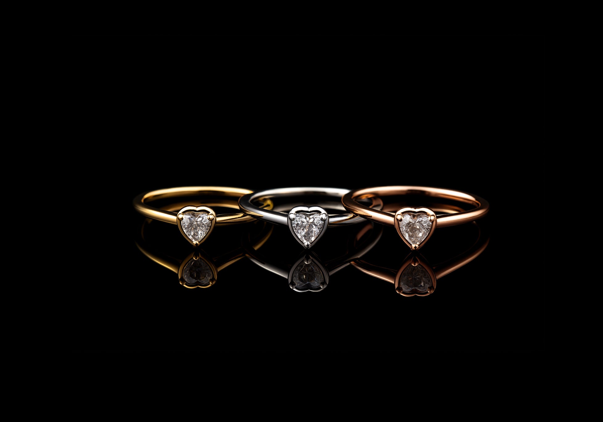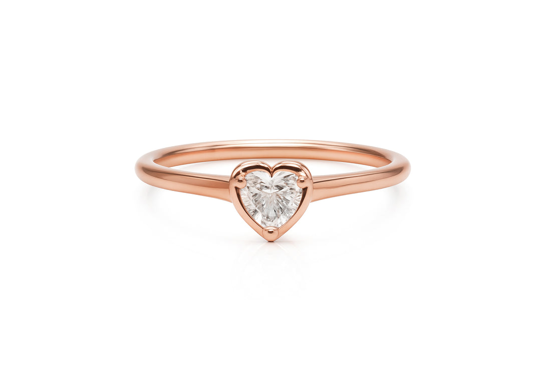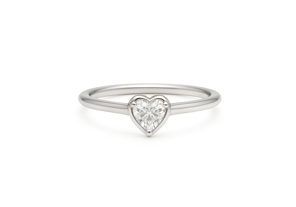 - Le diamant en forme de coeur est serti avec 3 griffes au centre du coeur en or.