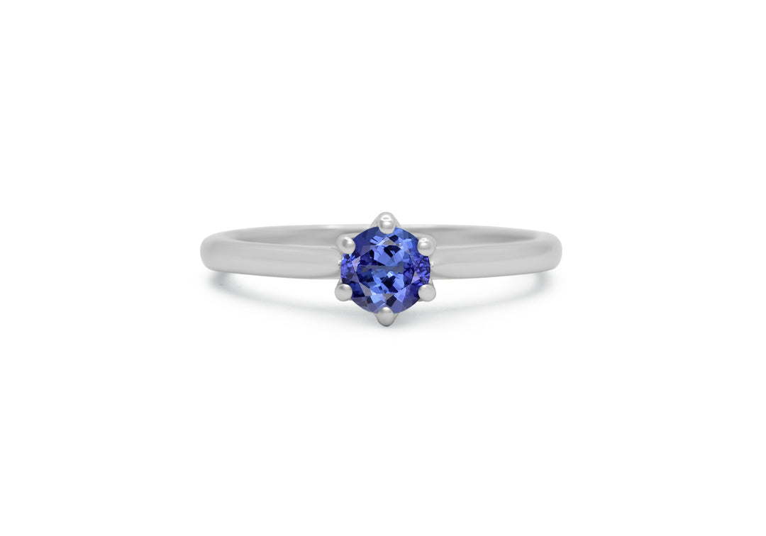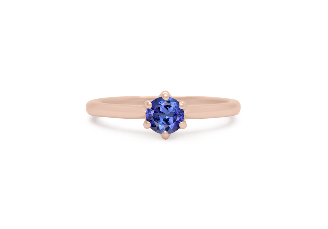 - Gold solitaire ring with a beautiful 6mm tanzanite.