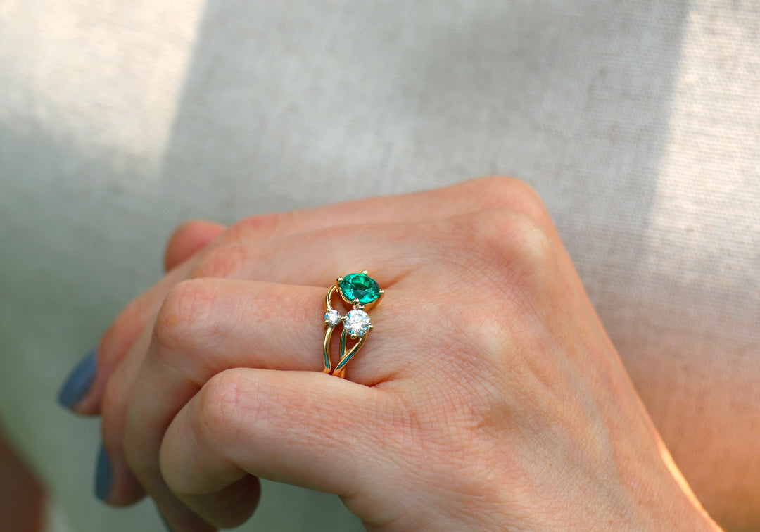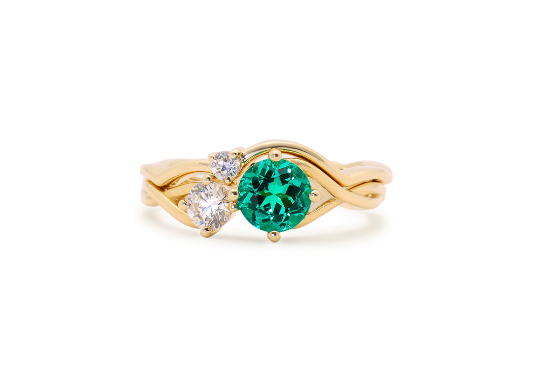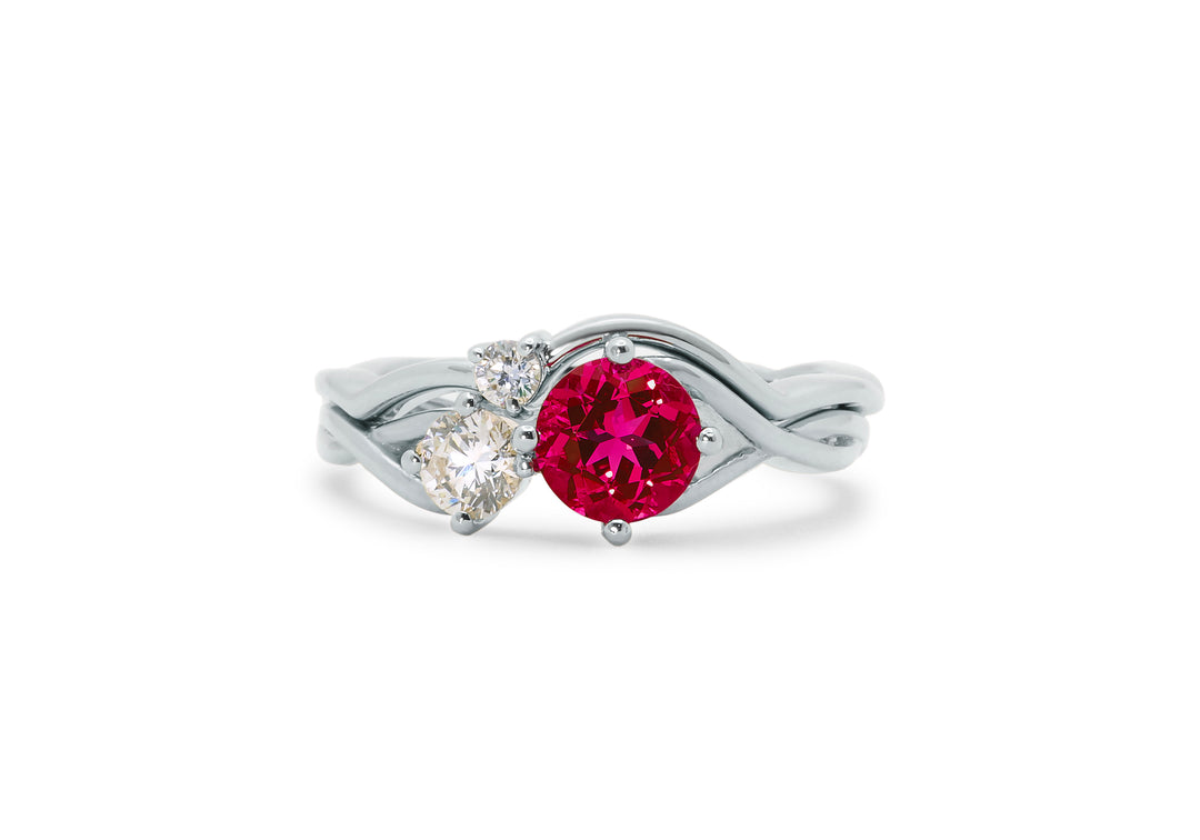 • Choice of emerald, ruby or sapphire paired with a diamond.