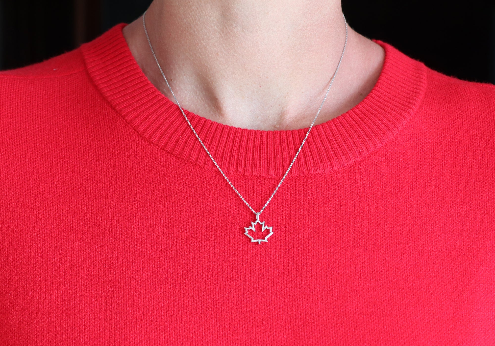 Canada souvenir necklace with gold maple leaf.