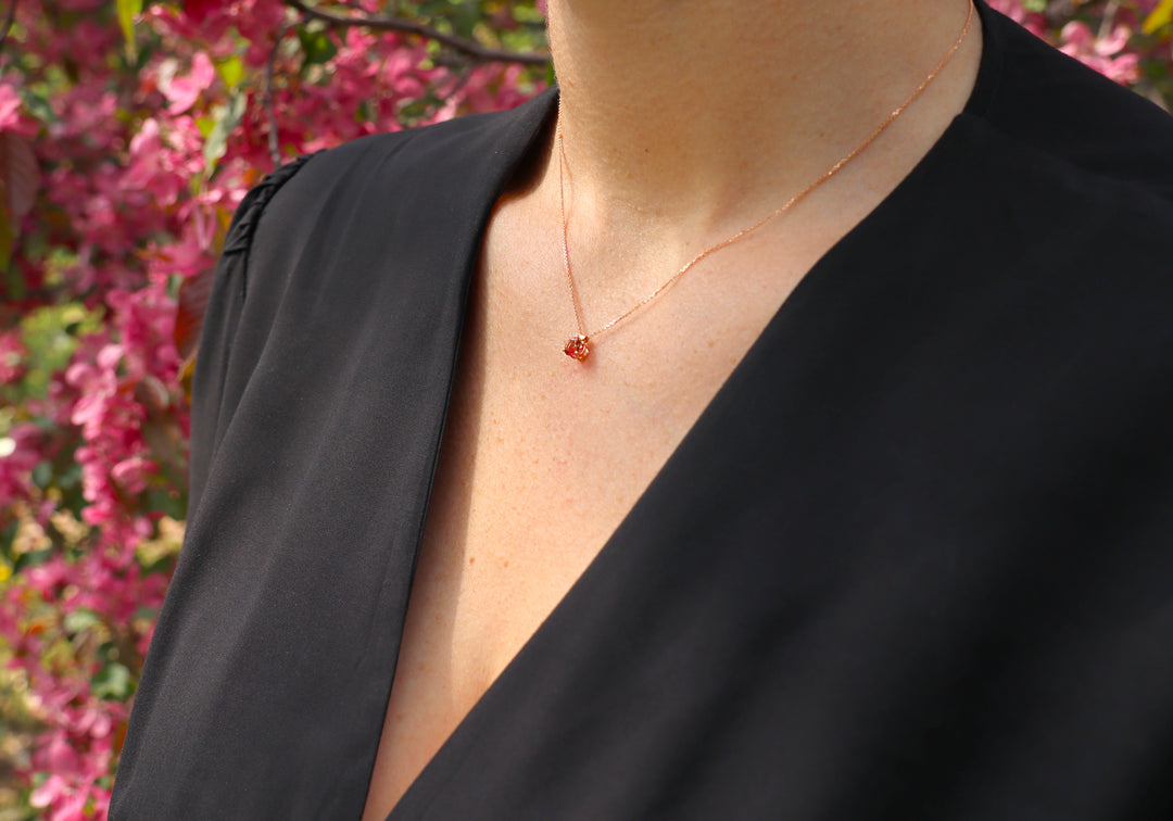 - Pendant with a 5 mm bewitching red garnet.