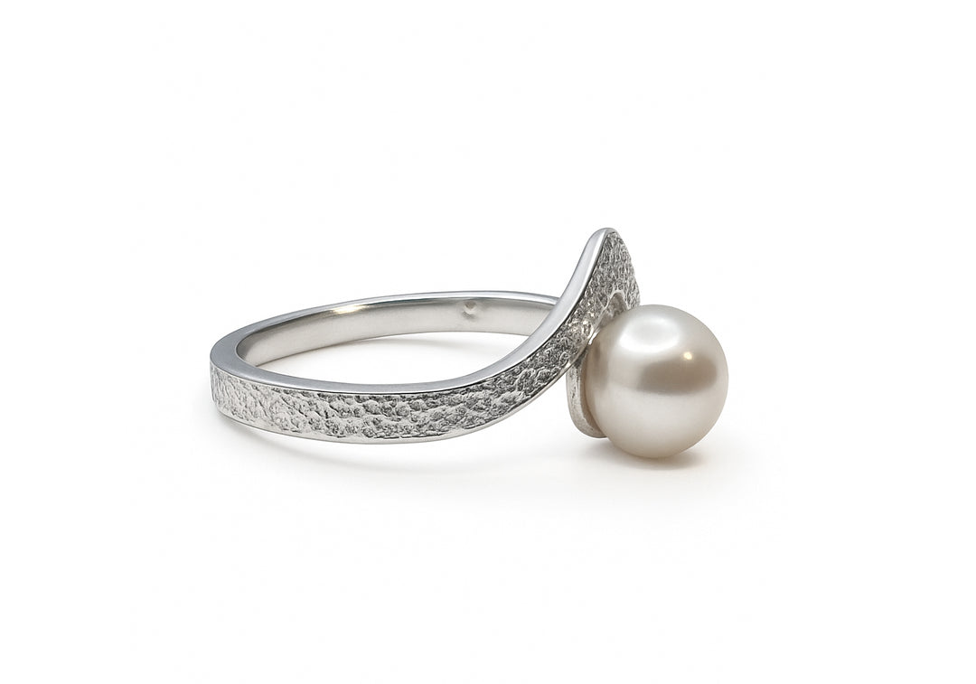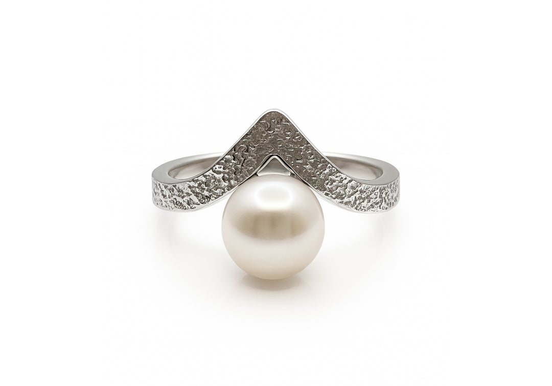 - Magnificent white gold V-shaped ring with the unique rose-flame texture.