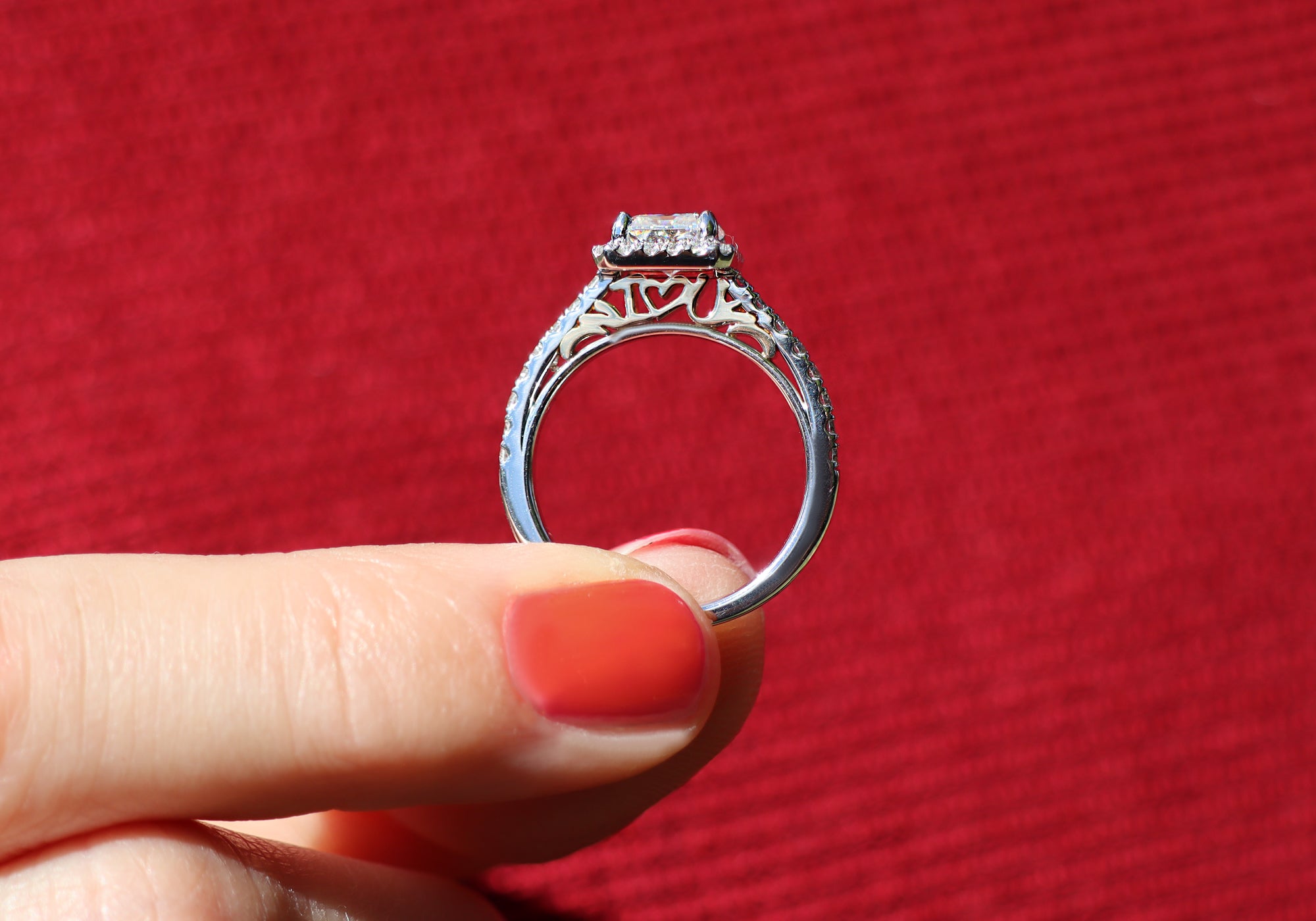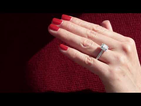- The ring shank, rounded and comfortable, has 16 diamonds.