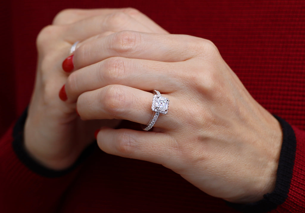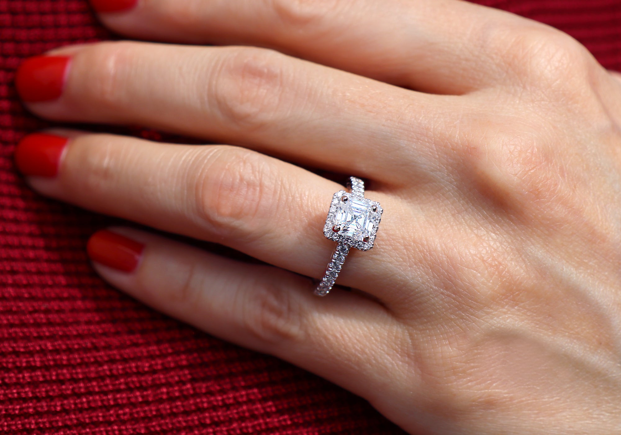 - 1.5 ct Asscher cut diamond accompanied by 38 other diamonds.