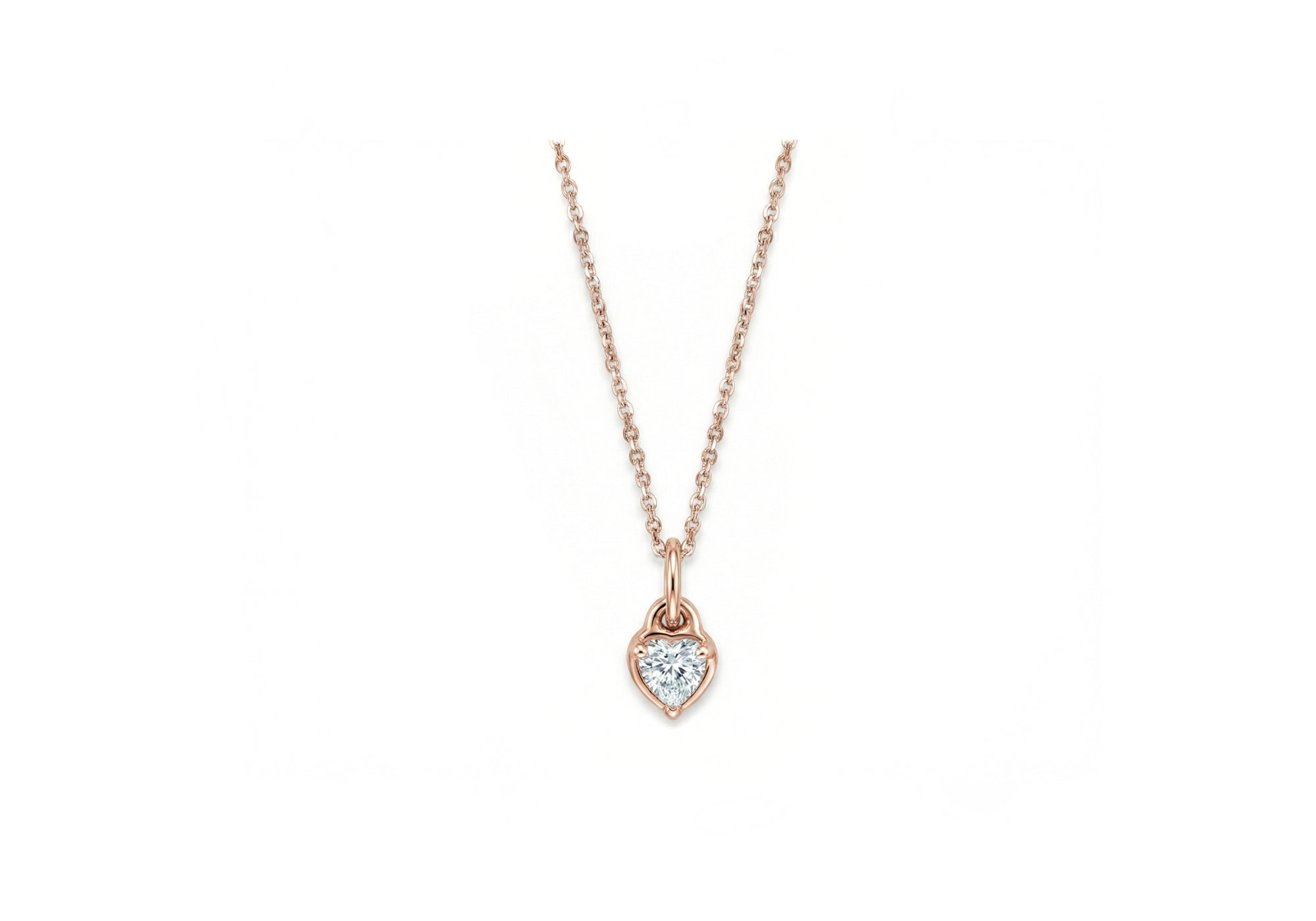 • The heart-shaped diamond is set with 3 prongs in the center of the gold heart.