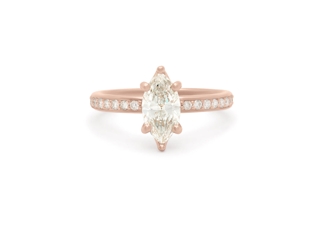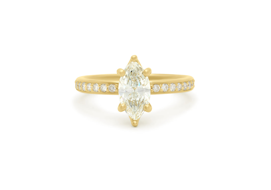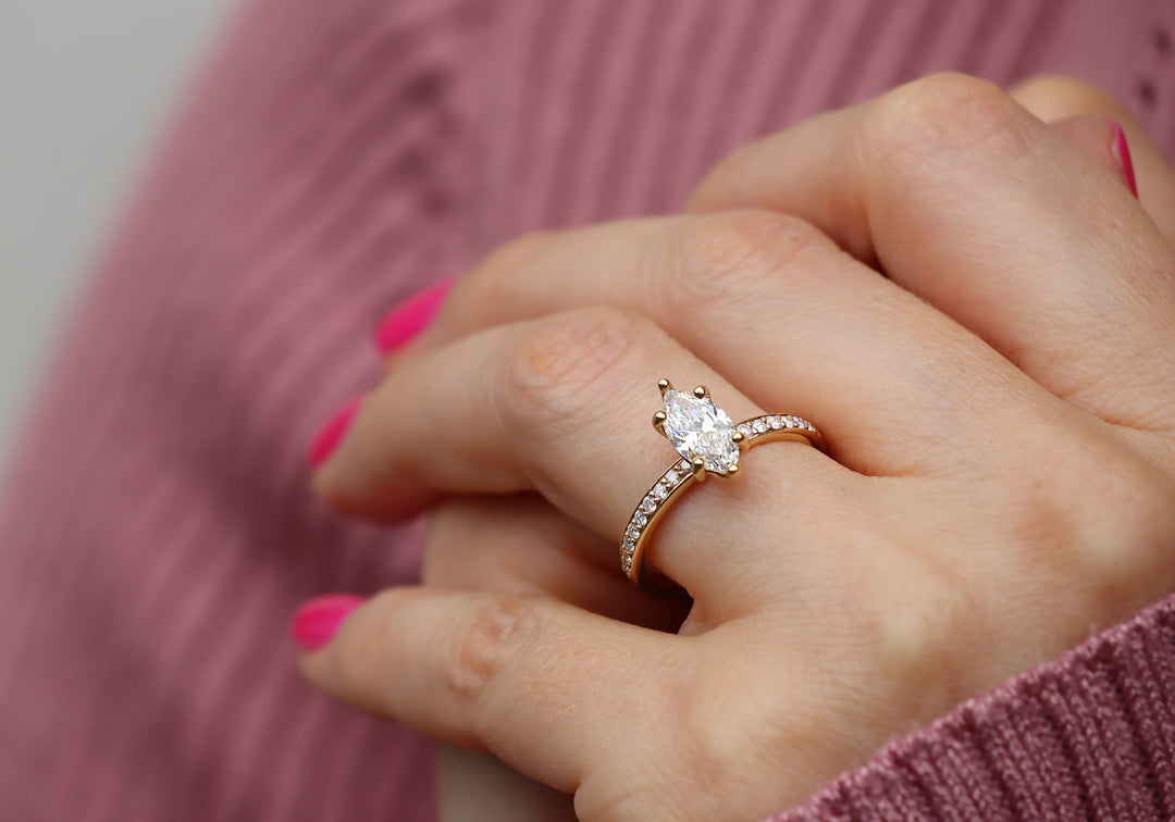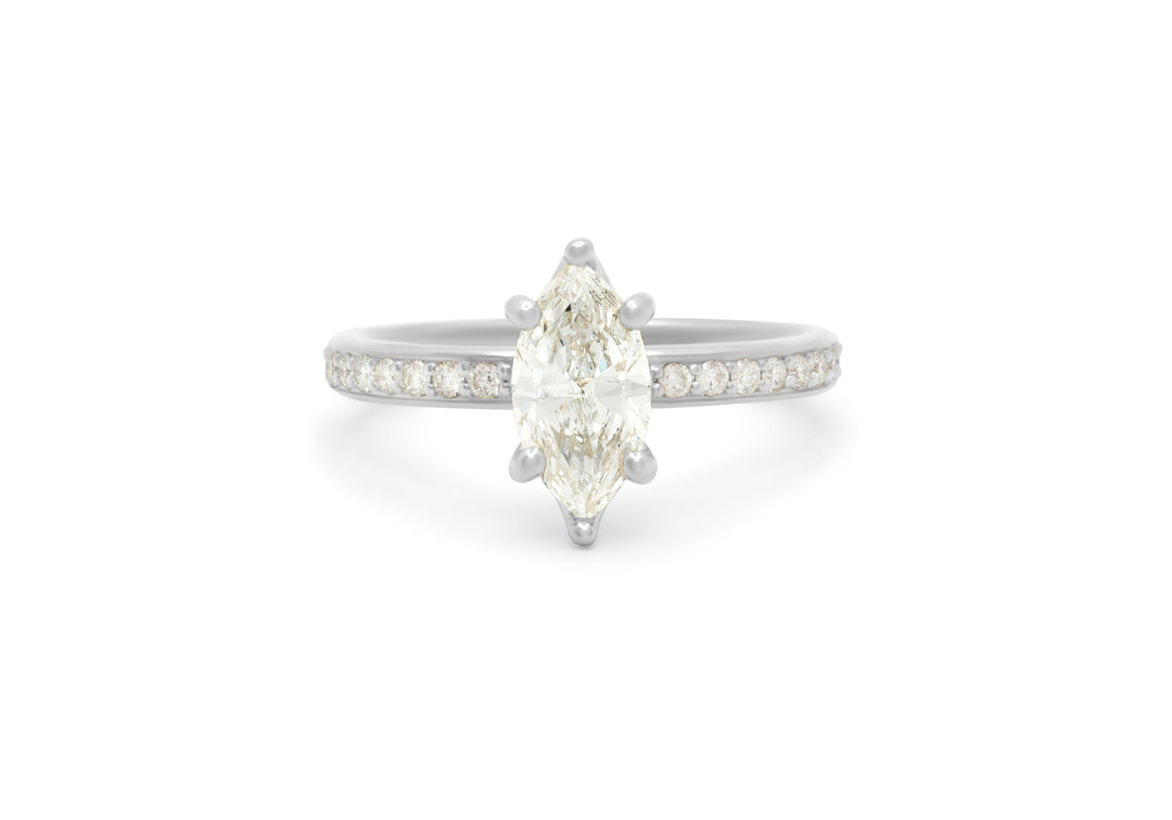 - Engagement ring with a 1 carat marquise diamond.