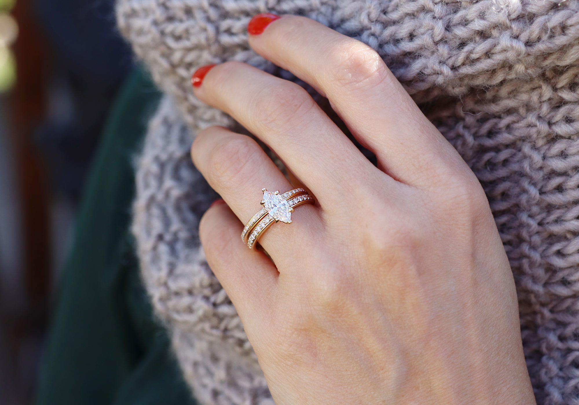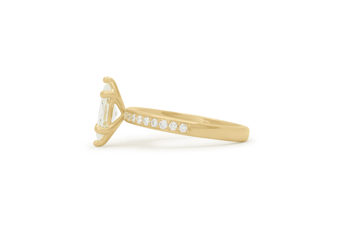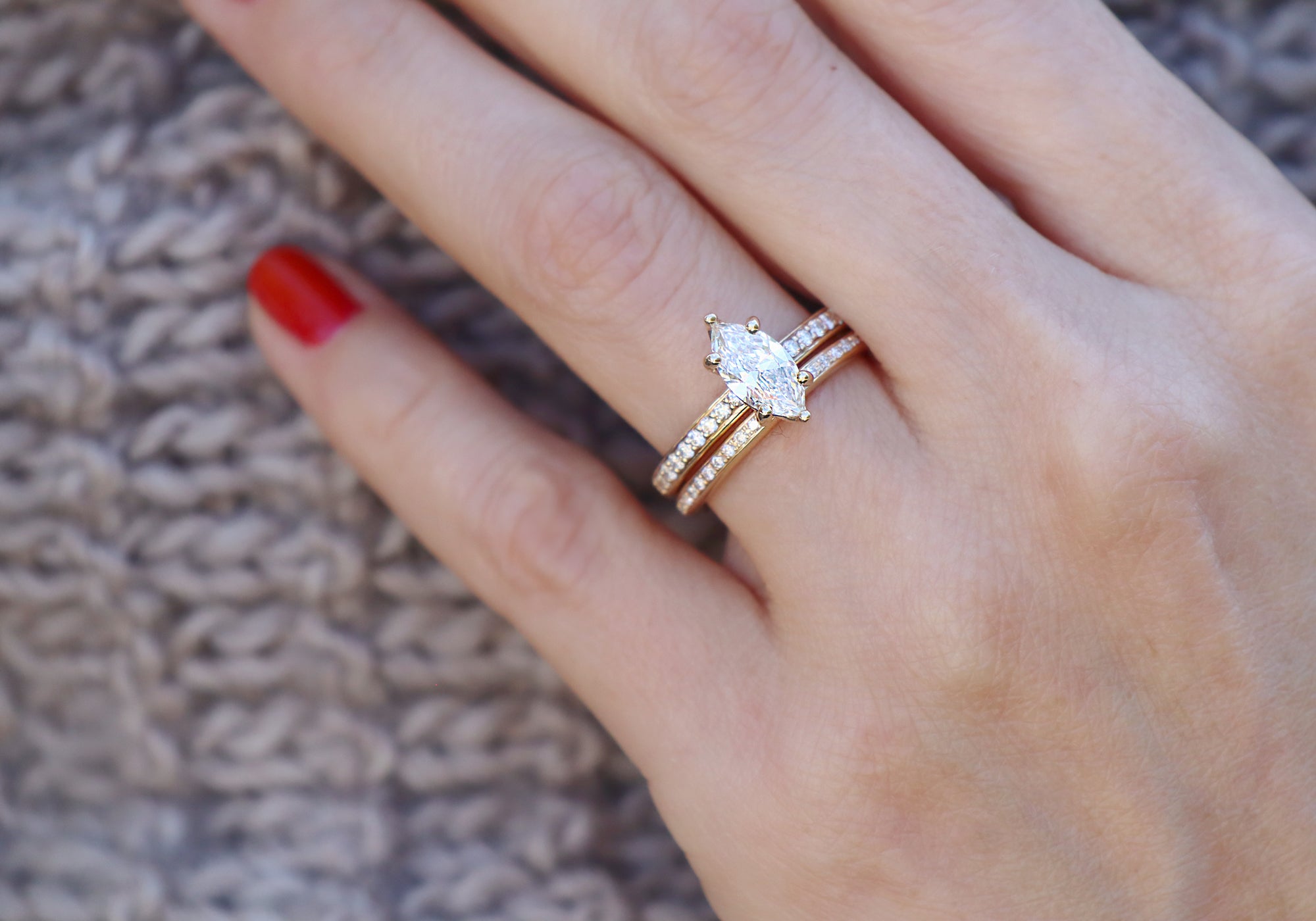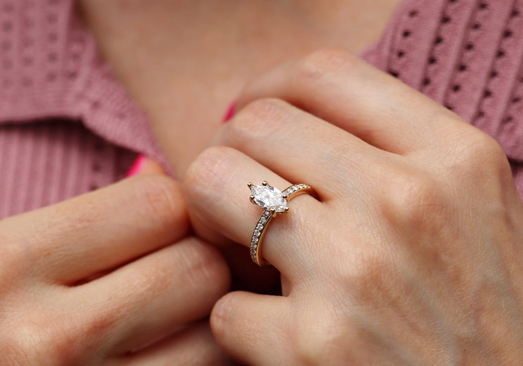 - Engagement ring with a 1 carat marquise diamond.