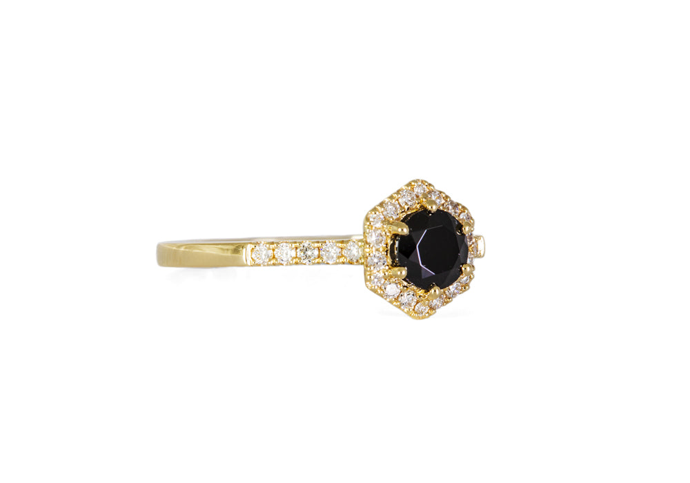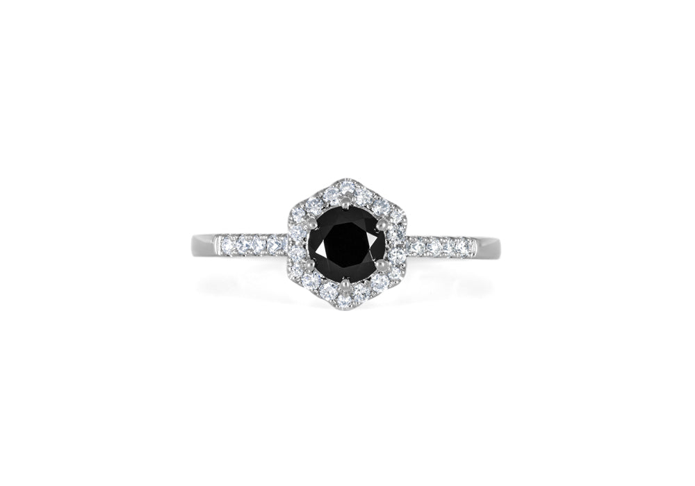 - The spinel is surrounded by a hexagonal halo of 18 diamonds.