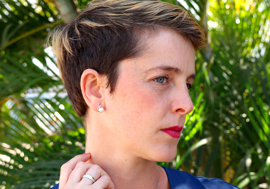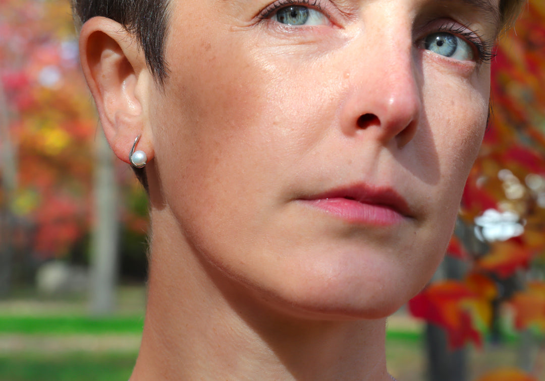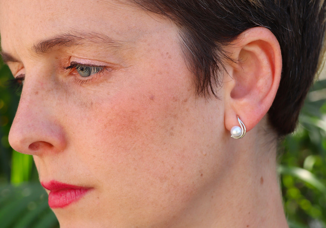 - Freshwater pearl on a double-stemmed sterling silver earring.