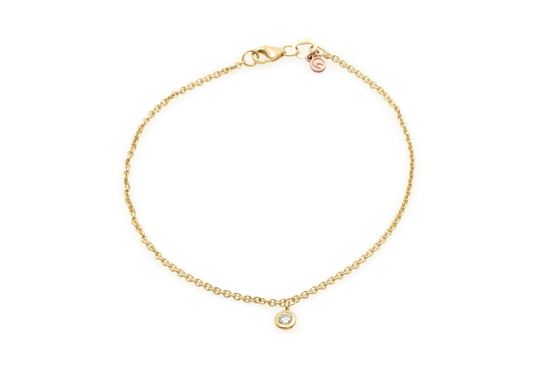 - Gold bracelet with pendant set with a diamond.