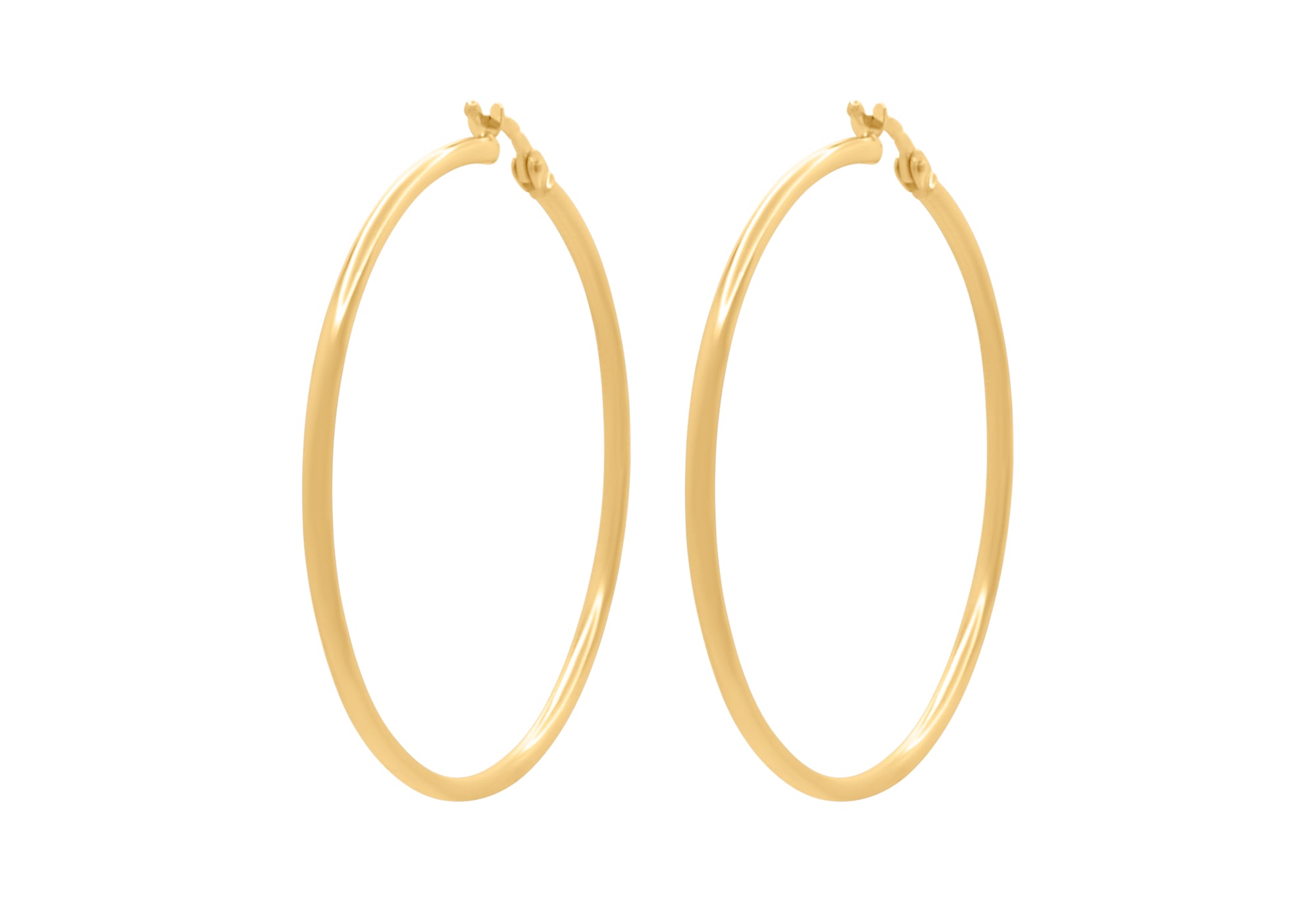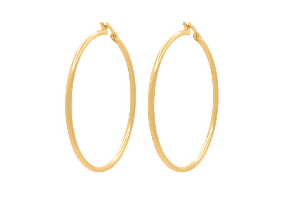 - Gold hoop earrings, 44 mm in diameter.