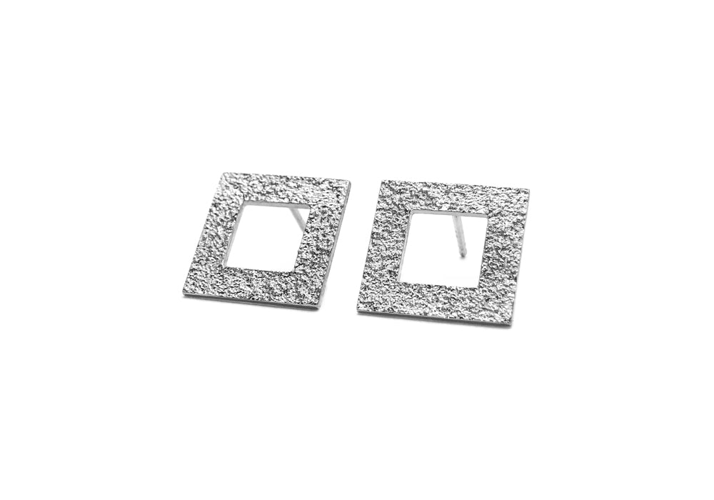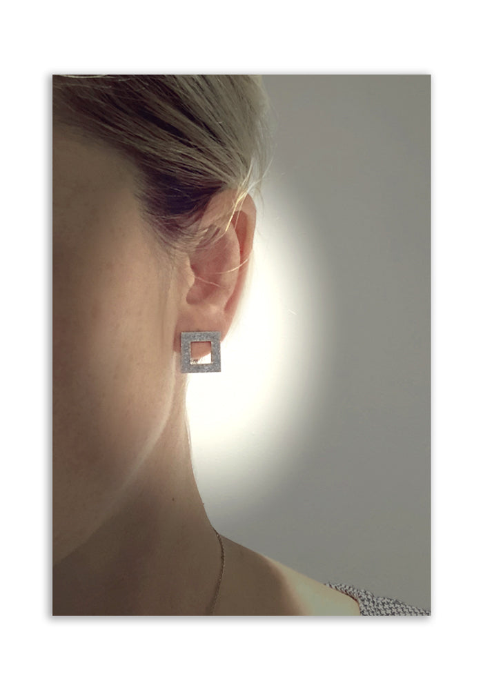 - Square shaped earrings in gold.