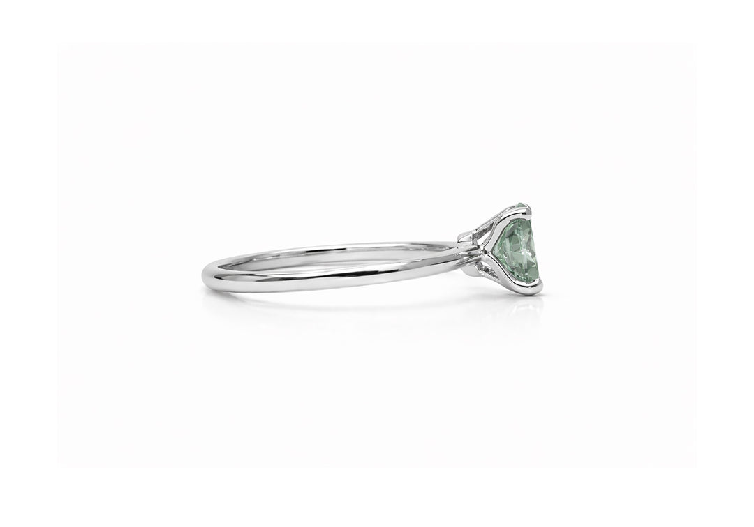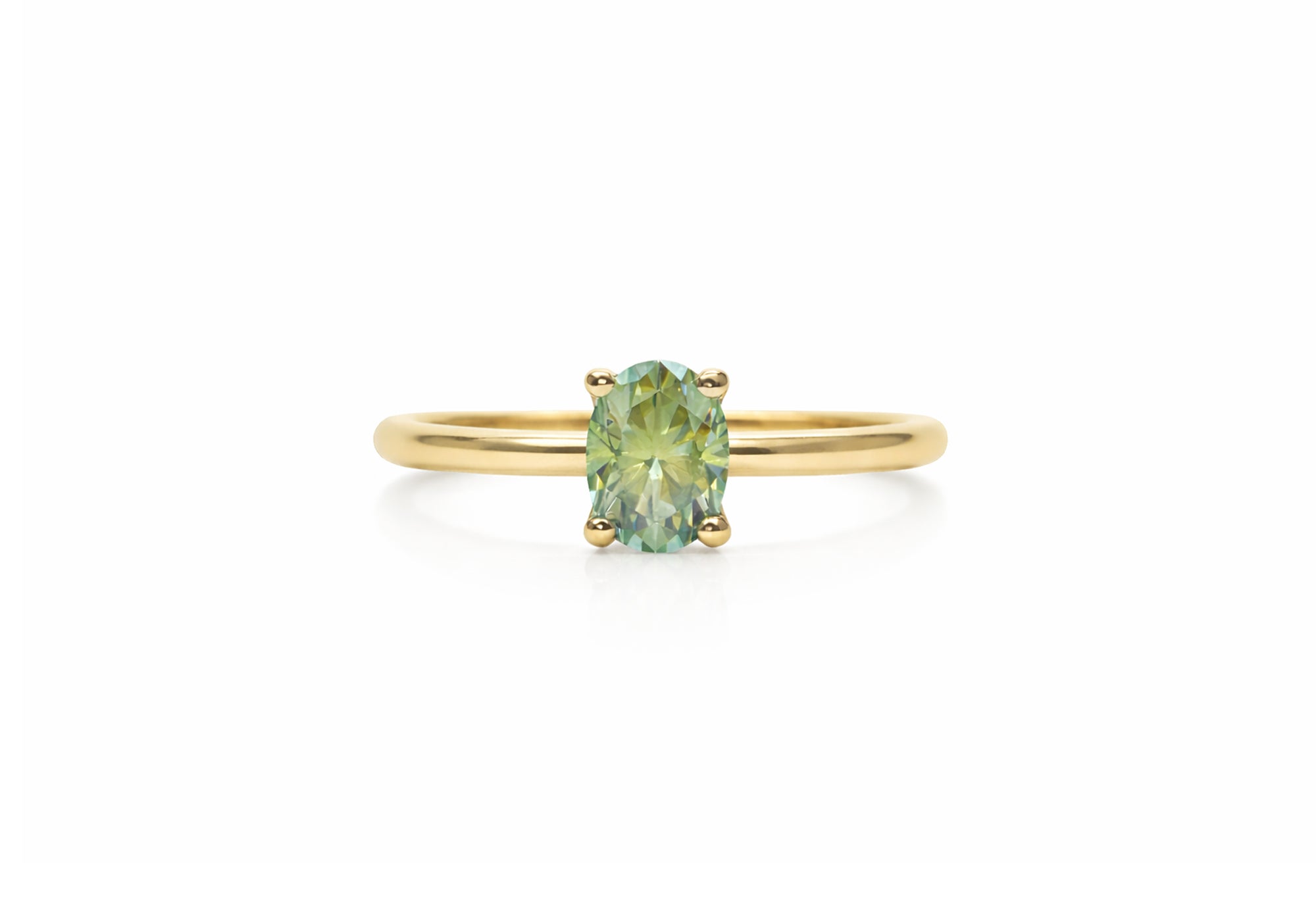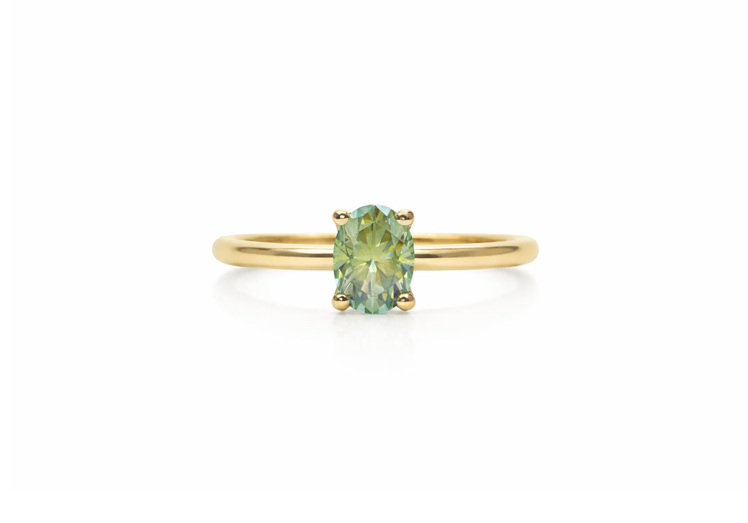 - Oval in shape, the stone is mounted on 4 prongs.