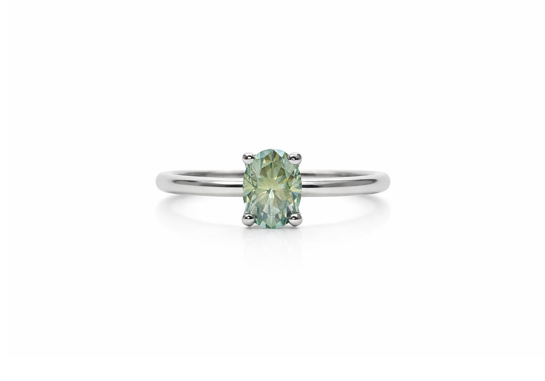- Available with a teal colored moissanite.