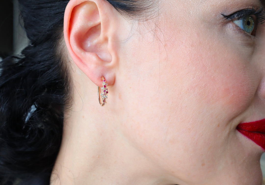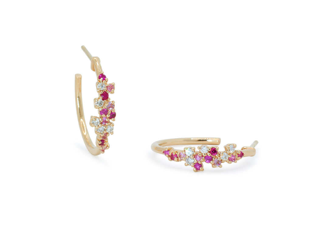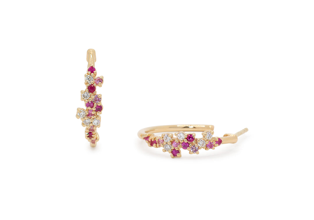 - Recycled gold earrings with 15 gems placed to form a cloud.