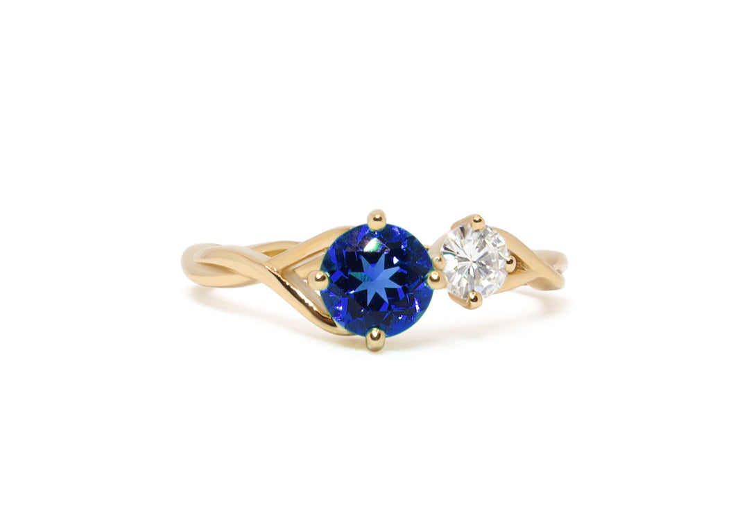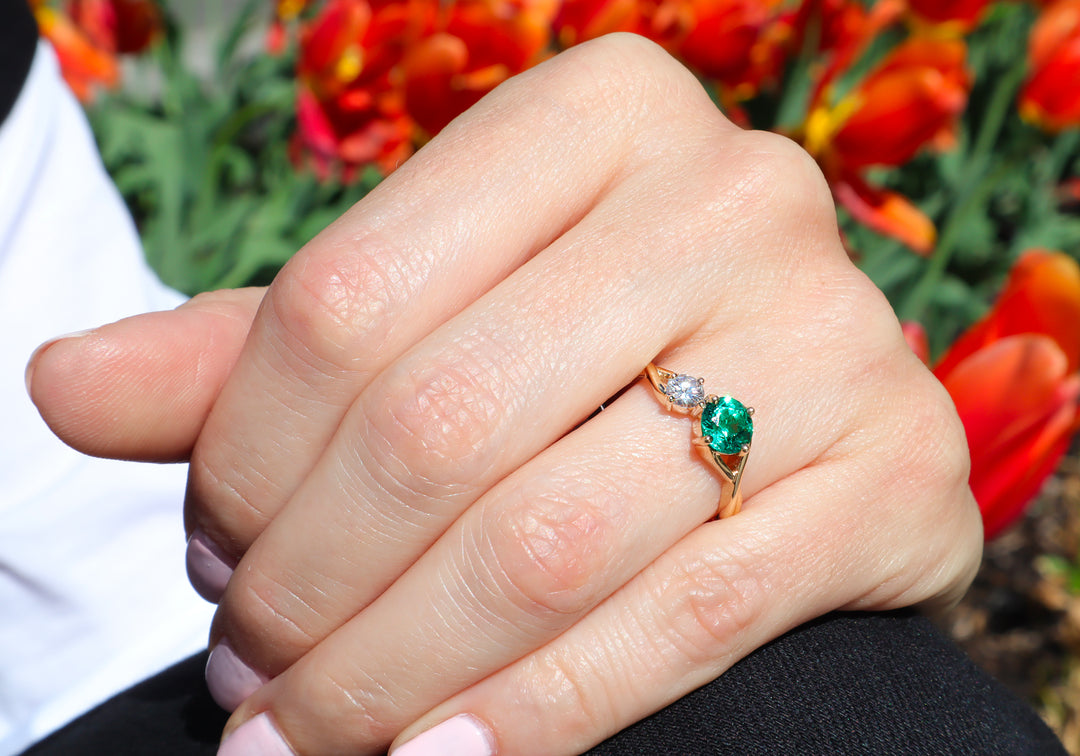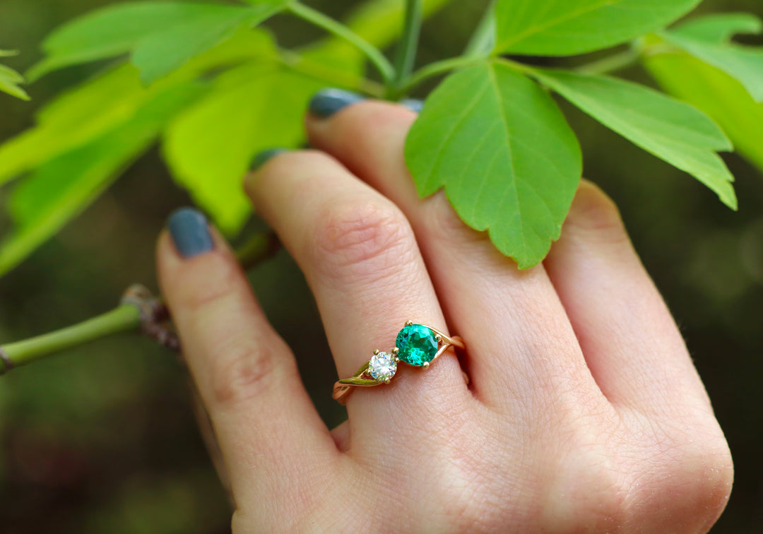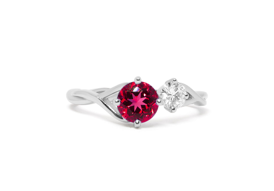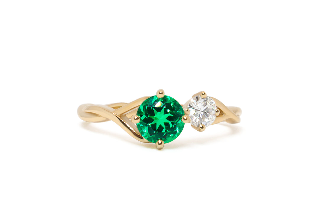 - Choice of emerald, ruby or sapphire paired with a diamond.
